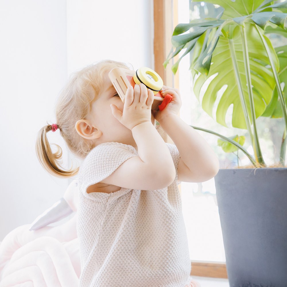 Mi primera cámara es la herramienta perfecta para despertar la curiosidad de l@s más peques. Diseñada en madera con un estilo vintage único, les ofrece la oportunidad de explorar el mundo desde una nueva perspectiva a través de su lente de caleidoscopio.