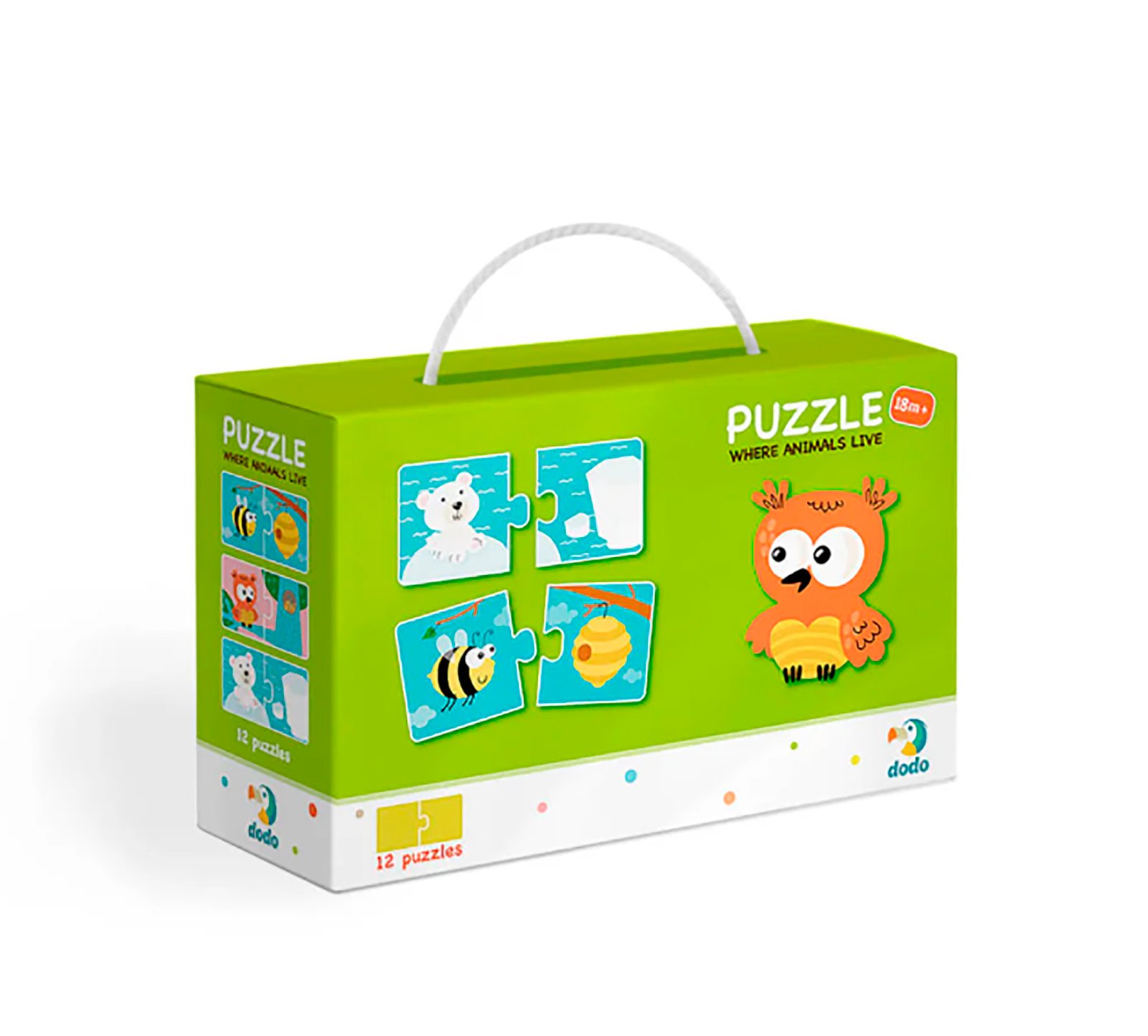 Un primer puzzle perfecto para descubrir el mundo animal y aprender dónde vive cada uno de sus habitantes mientras se divierten.